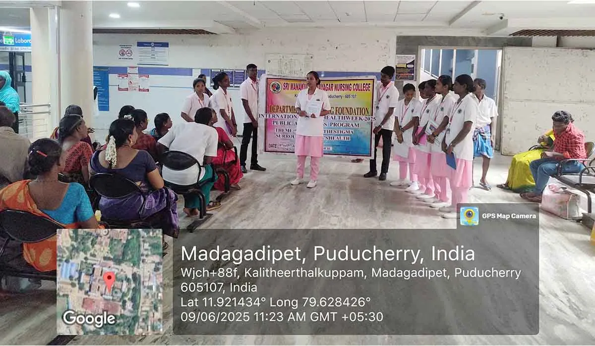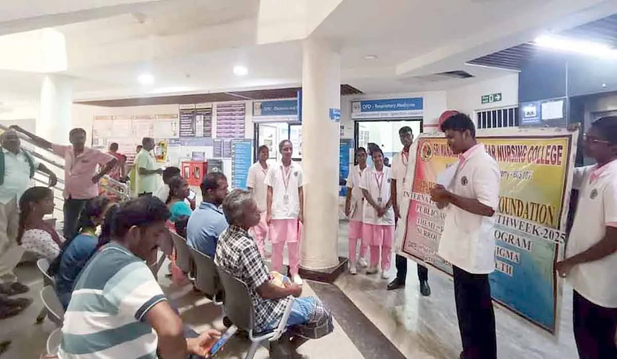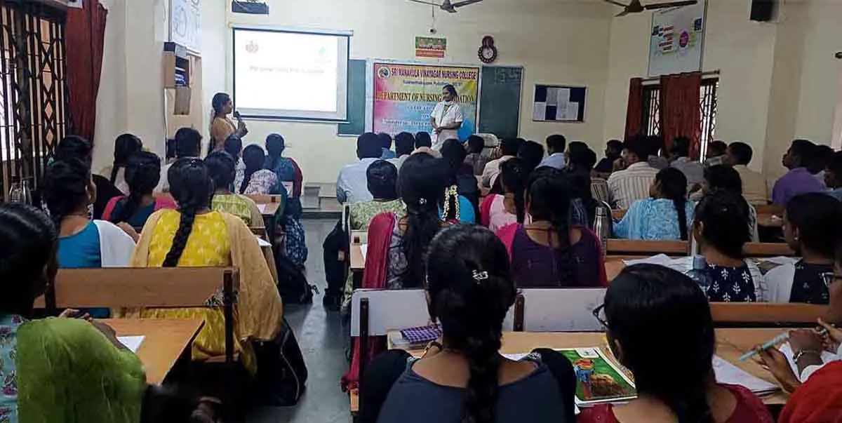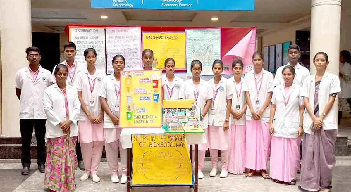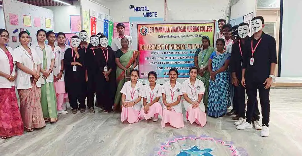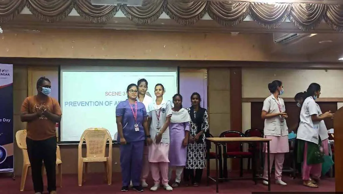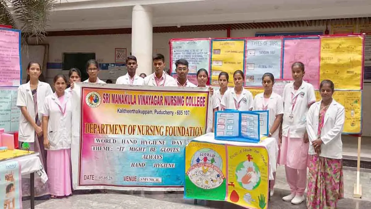 “World Hand Hygiene Day” was celebrated on 5th May 2025 under the theme “It might be gloves. It’s always hand hygiene.” A health stall and role play were organized at SMVMCH. B.Sc. (N) III Year and P.B.B.Sc. I Year students actively participated in the event. Around 80 OPD patients and staff nurses benefited from the program.