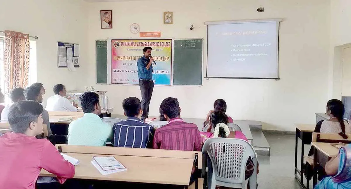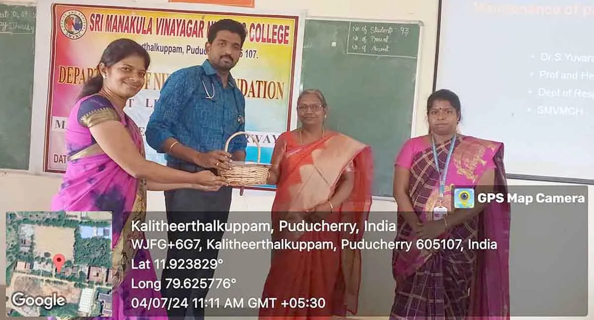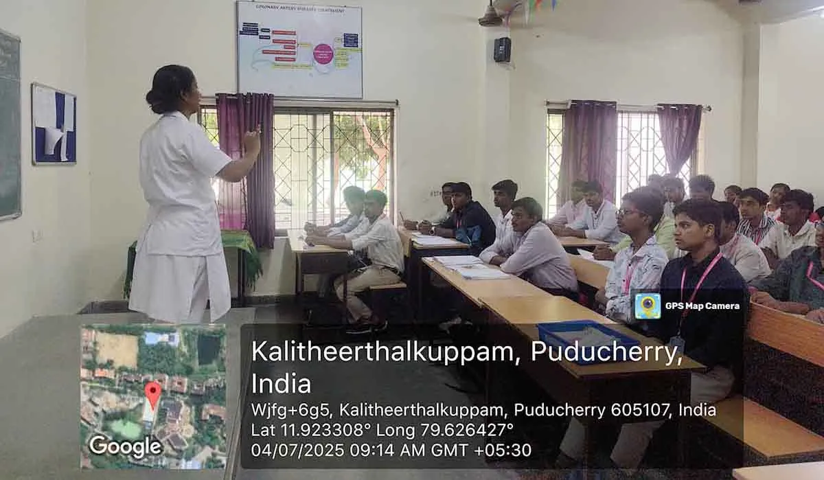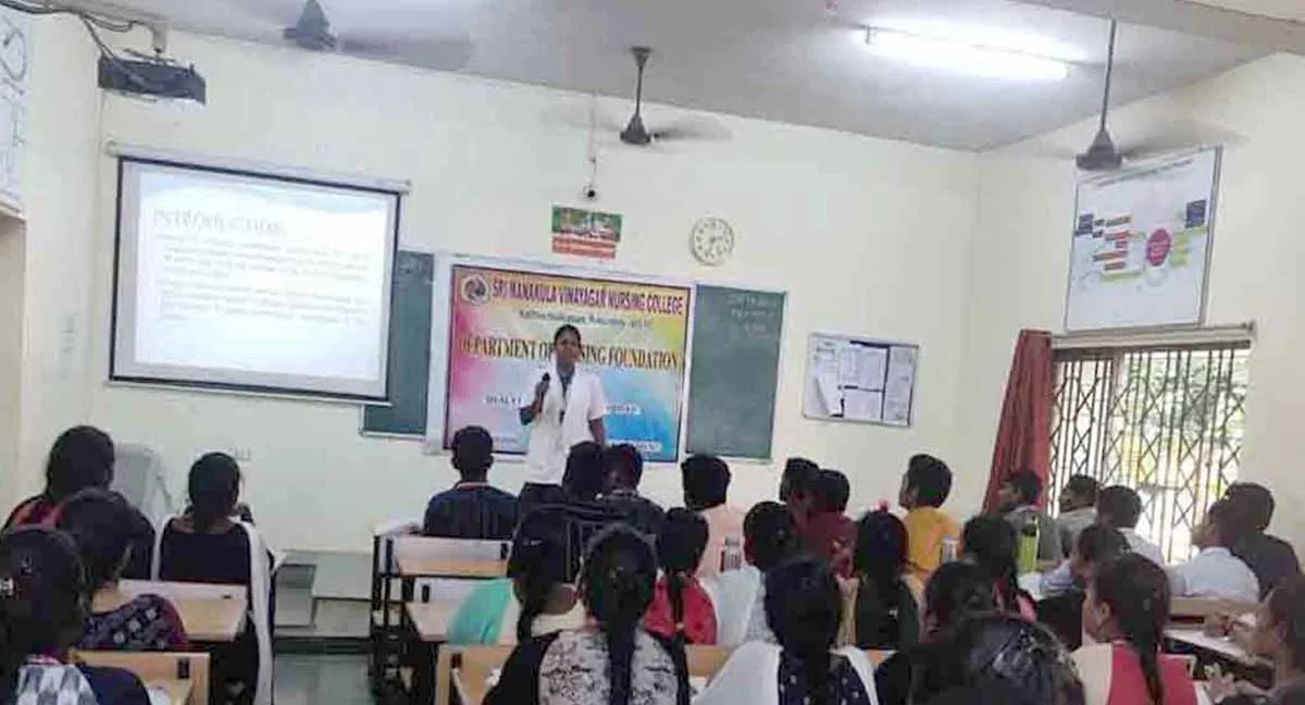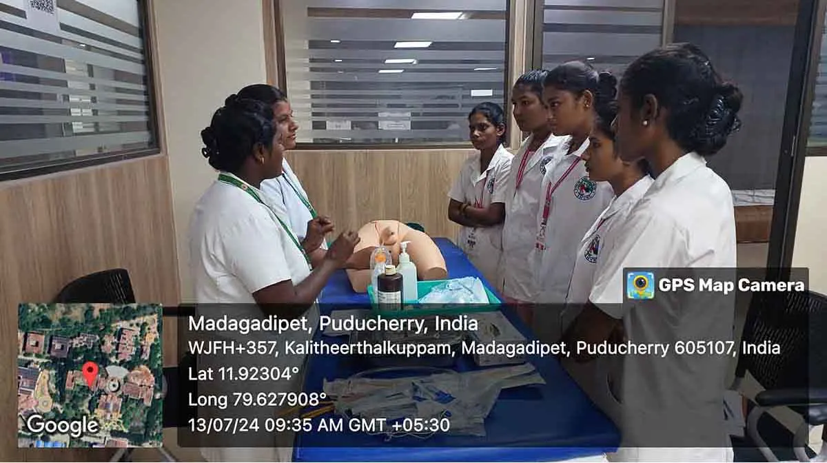 A School Health Programme was conducted on “First Aid Management (Road Traffic Accident)” on 12th July 2024. B.Sc. Nursing I-Year (II Semester) students performed a Role play at Kalaignar Karunanidhi Government Higher Secondary School, Madagadipet. The session benefited 103 students, 30 teachers, and 25 staff members.