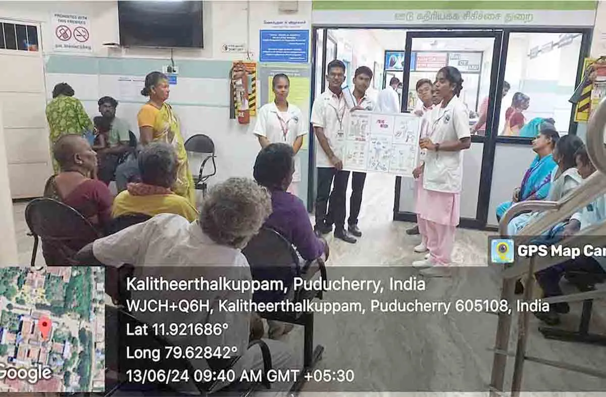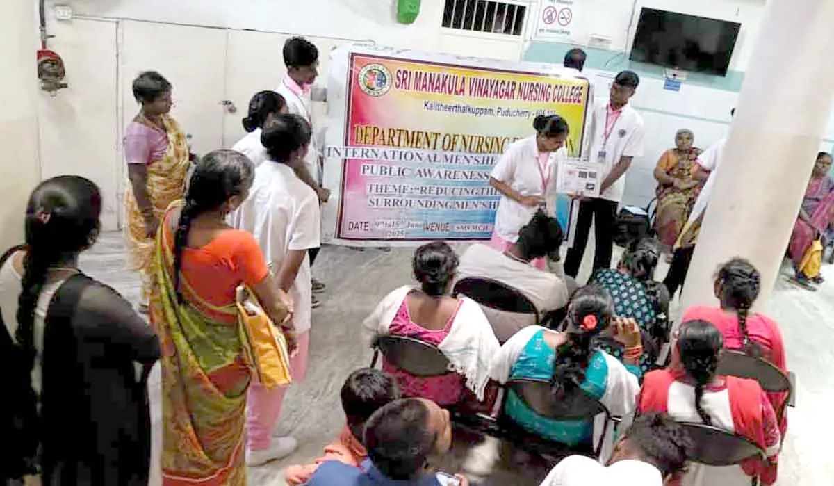Celebrated “International Men’s Health Week – 2024” from 12th to 14th June, 2024 under the theme “Stronger Together.” A Mass Health Education Campaign was conducted at SMVMCH OPDs, focusing on men’s health issues and prevention. B.Sc. Nursing I-Year (II Semester) students actively participated, and benefited over 150 individuals daily.