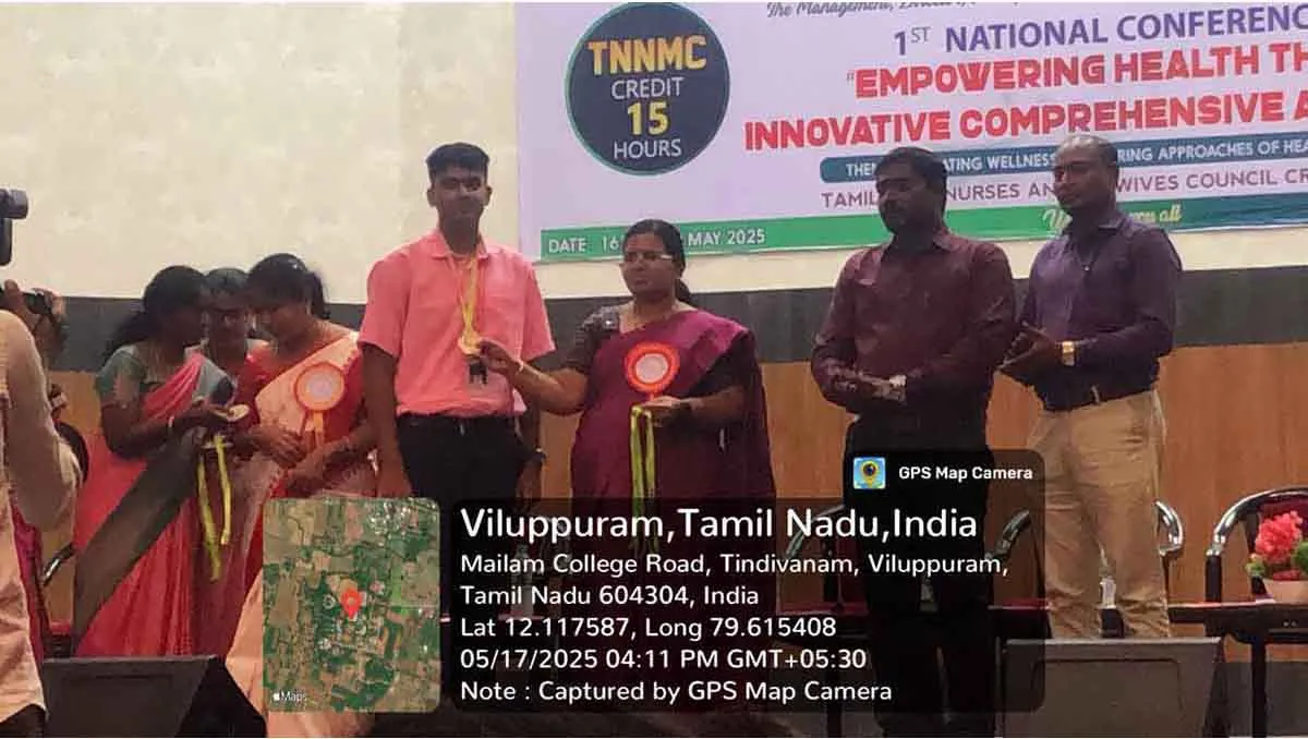 The 1st National Conference on “Health Assessment Module” was held at Mailam Nursing College from 16th to 17th May 2025. The sessions covered Eye & ENT, Respiratory, Neurological, Cardiovascular, and Pediatric assessments. A total of 96 B.Sc. Nursing I-Year (II-Semester) students benefited from the conference.