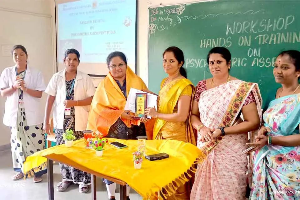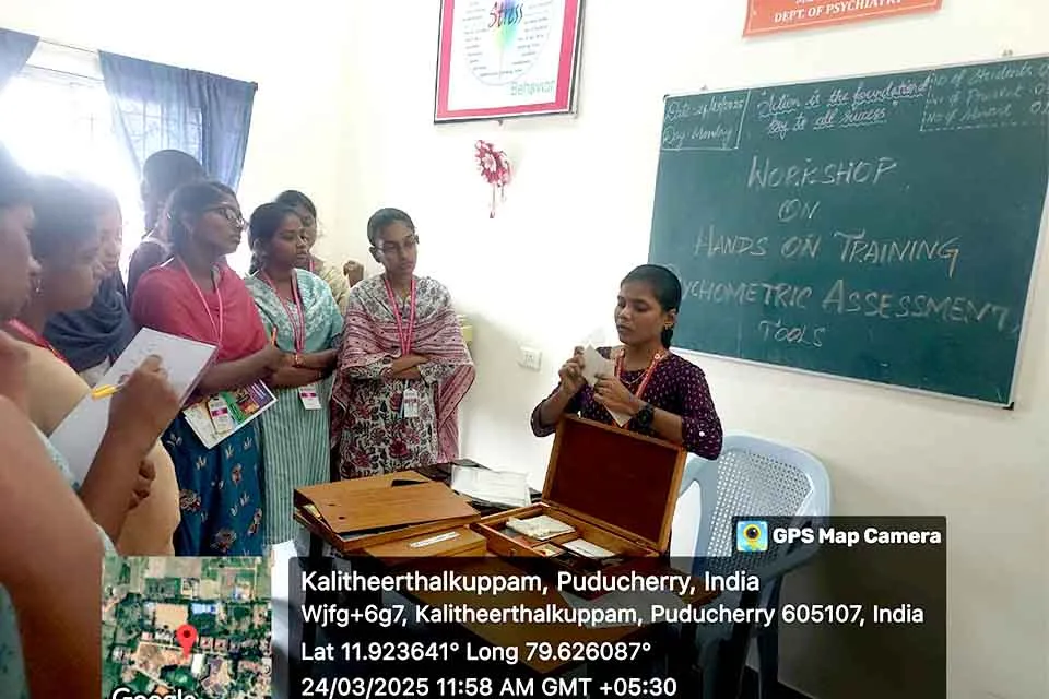 A workshop on “Psychometric Assessment in Psychiatry” was organized at SMVNC, Lecture Hall 10, on 24.01.2024. Mr. Sivanandam, Mrs. Shamira, and Mr. Jean Leuc shared valuable knowledge on various psychometric assessment tools in psychiatry, benefiting around 98 students.