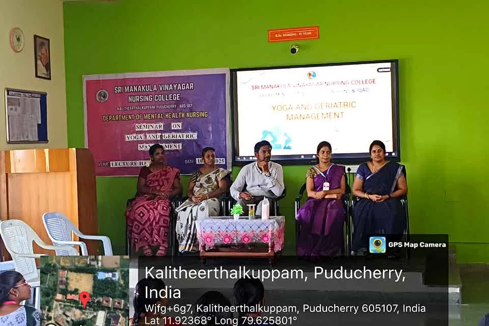 A seminar on “Yoga and Geriatric Management” was organized in Lecture Hall VII, SMVNC, on 10.07.2025. Mr. Swaroup Ramanan Alias Premkumar M., provided practical training on yoga for geriatric well-being, benefiting around 98 students.
